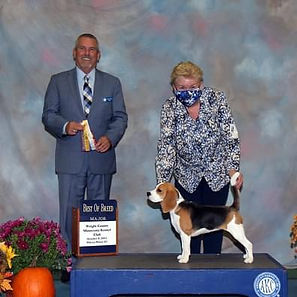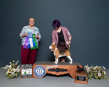 Kisbee is a wonderful boy out of our Walter X Lucy litter. We are thankful to his owner Colleen for letting us show him and letting friends use him in their breeding program. Unfortunately his health testing did not come back as expected and cut his siring and showing time short. But he's living his best life with his family. See pics of some of his kids above!
